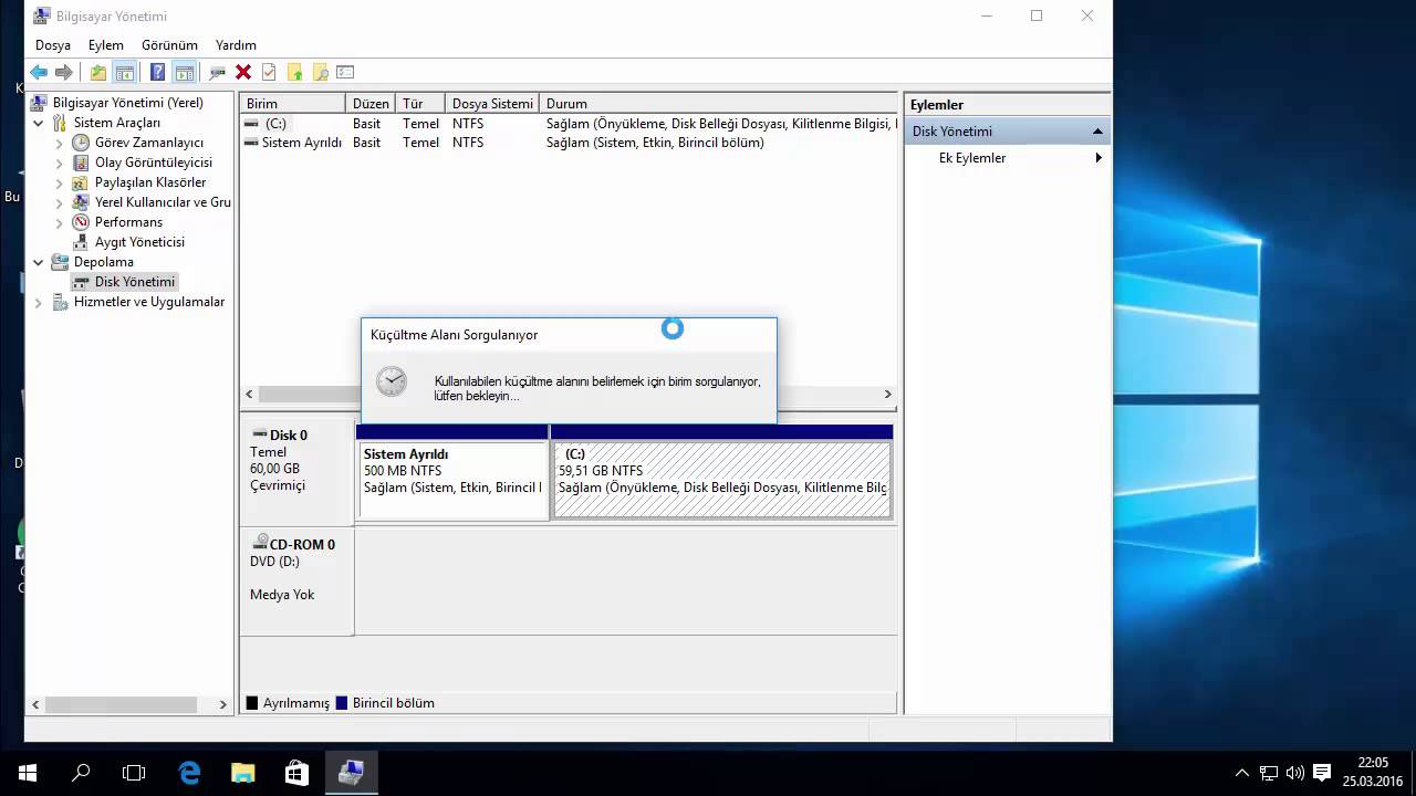 - Bölümlerin etkinleştirilmesi için Disk Management araçlarını kullanın.